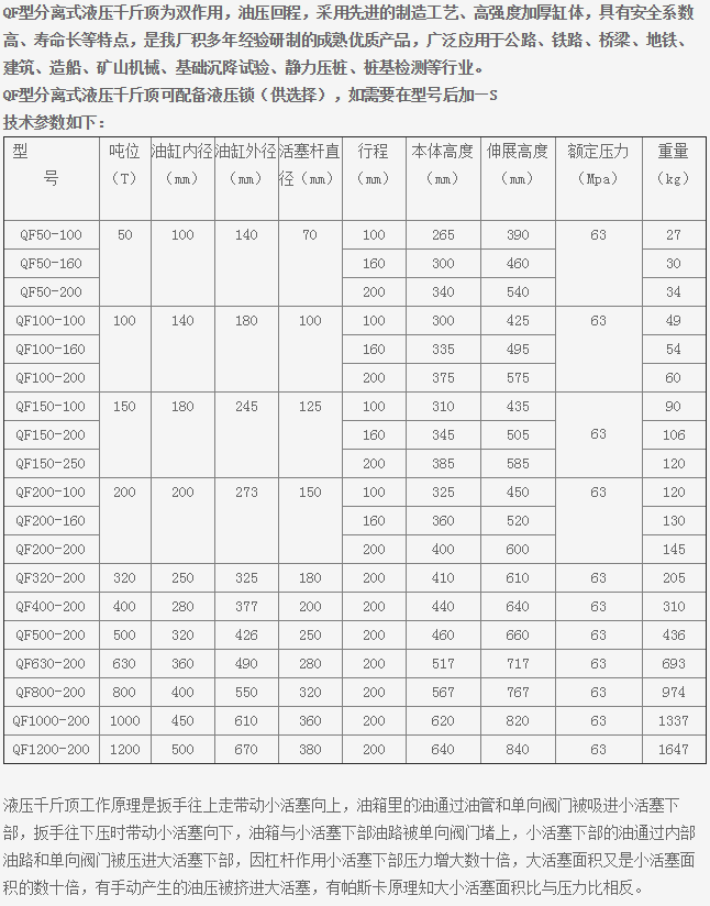 QF系列分離式液壓千斤頂