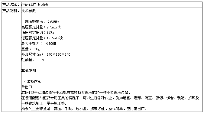 SYB-1型手動(dòng)油泵